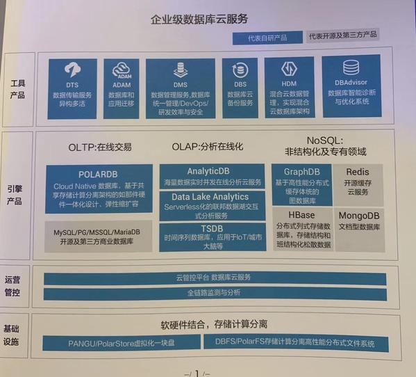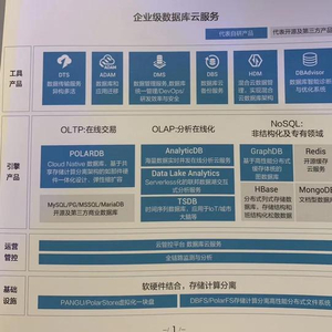 其中,OLTP是阿里云最重要的数据库板块。一方面,阿里云提供第三方商业数据库和开源数据库的托管服务,如SQL Server、MySQL、Postgresql等,以此实现线下数据库向云上数据库的迁移。另一方面,阿里研制出了自研云原生数据库产品,即PolarDB,以实现云上客户按需按量使用,同时按需按量付费的需求。