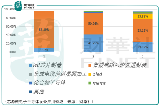 从目前芯源微电子半导体设备所应用的领域观察,目前核心业务来源为led芯片和集成电路后道先进封装,未来发展的方向为oled和集成电路前道晶圆加工领域。