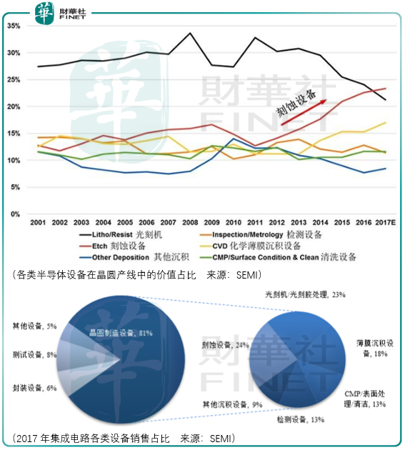 其四为半导体设备所细分的领域的不同,其对应的市场规模及未来的发展空间不同: