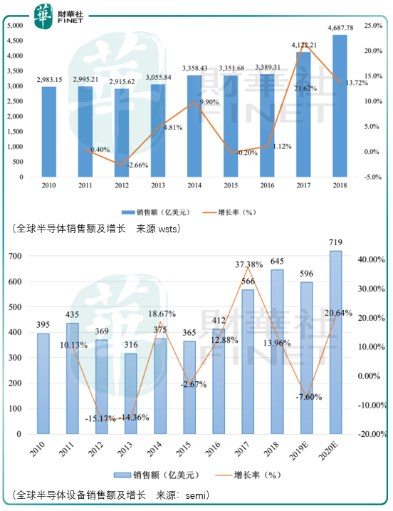从全球半导体整体和设备局部的增速观察,显然半导体设备需求的增减具备更大的弹性,而国内半导体设备销售的增长率在2017年更是达到了56.14%,这也是为什么市场愿意在这几年给予北方华创、中微公司这类半导体设备如此高估值的原因之一。