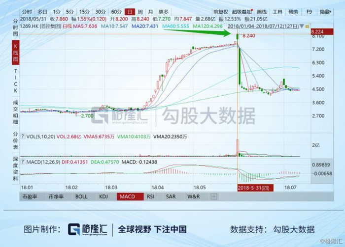 那是在2018年的5月,首控集团在此前被纳入MSCI香港指数,于是迎来了一波“炒纳入”的行情,股价从不到3块一路涨到8块,市值翻2.6倍。而5月31日指数调整生效的当天,首控来了个高开低走,高位一条大阴线,看着瘆得慌。