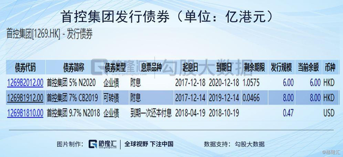 2017年12月,首控先后发行了两笔债券,一个是企业债,2020年12月18日到期;另一个是可转债,即将于今年12月14日(大概半个月后)到期,这笔债券的金额是8亿港元。