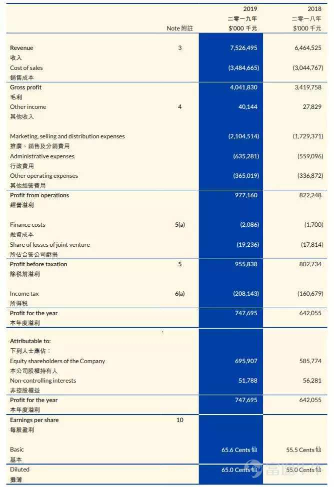 以维他奶为例,2018财年其营业收入为75.26亿港元,2009财年为30.12亿港元;2018财年净利润为7.48亿港元,2009财年为3.01亿港元。十年间规模实现翻倍。