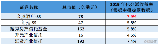 与金茂酒店类似的品种还有REITs,REITs所投资的都是租金稳定的商业地产,也具有稳定分红派息的特点,长期持有的投资者通常能够获得可观的回报。港股市场的REITs有越秀房托、开元产业信托、汇贤产业信托等10只。相比于这些REITS,金茂酒店的分派率遥遥领先。