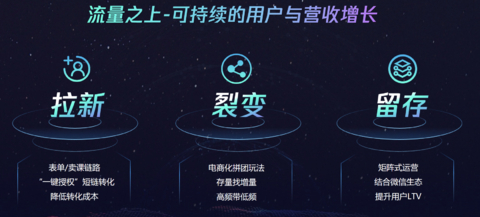 第三是留存环节,可以构建矩阵式产品运营,沉淀有相关需求的用户群。结合微信生态及群运营,沉淀高潜用户群体,打造增长闭环,从而提升用户LTV价值。