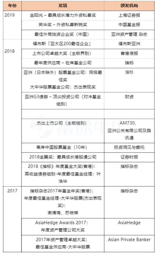 惠理的资产管理规模是一翻再翻,560万到152亿之间足足相差近3000倍,公司也一跃成为了亚洲最大的资产管理公司之一。AUM长期稳定增长的状态就是公司给投资者展示的最为亮眼的成绩单,而累获殊荣更是实力的证明,至今惠理已累计获得逾200个奖项。