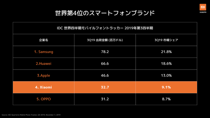 小米和小米手机都在中国起家,曾经是最具热度的品牌之一,如今的小米在中国市场冲劲并不如从前。根据IDC数据,2019年第三季度小米手机在中国卖出了970万台,相较去年同期减少了30.5%。中国手机市场的萎缩占了一部分原因,总量较同期减少了3.6%。