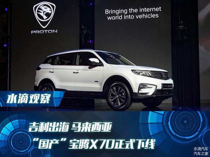 2019年12月13日,基于博越打造的宝腾X70会在马来西亚丹绒马林工厂正式下线,吉利向宝腾全方面输入产品、技术、管理、体系,接下来还有基于缤越打造的X50。