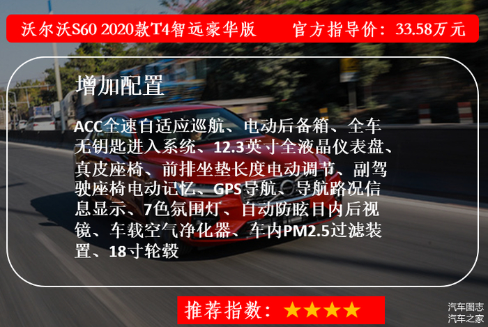 总结:全新沃尔沃S60是今年上市的豪华品牌重磅中型车之一,各方面都展现出了不错的竞争力,中配车型的性价比非常高。特别是安全方面,新车全系标配City Safety城市安全系统、车道偏移预警系统、道路交通标识识别、主动刹车、疲劳驾驶提示等配置,确实能够将新C级、新宝马3系、奥迪A4LL等同级主流竞品甩开一个档次。但同时需要注意的是,全新沃尔沃S60在体量、空间、品牌溢价等方面,与新C级和宝马3系仍然存在差距。而且,今年又加入了运动风格鲜明的凯迪拉克CT5,未来市场压力还是非常大的。