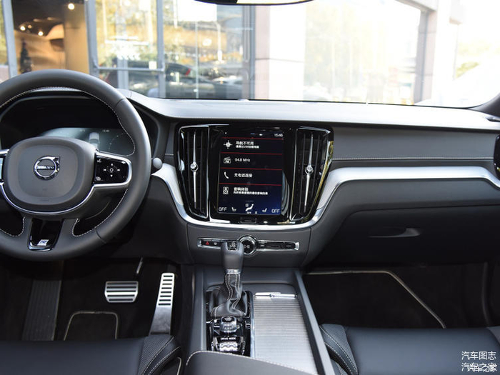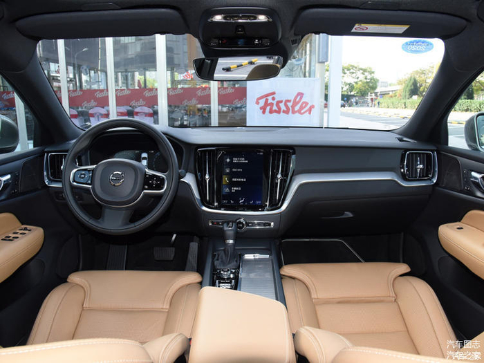 进入车内,沃尔沃全新S60的设计并不新颖,我们已经在XC60、X90上看得比较多了。好在做工用料还对得起豪华品牌的调性,T型台上方采用了大量的软性材质包覆、门板也用了比较细腻的皮质,同时还保留了S90上的前排杯架可移动盖板、副驾前方木纹饰版等。