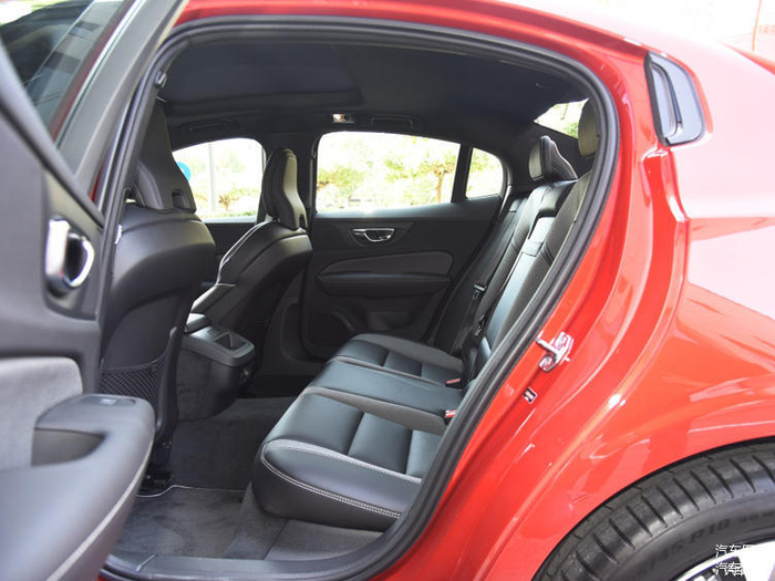 空间方面,全新沃尔沃S60虽然在车身尺寸上并不占优、甚至处于劣势,但空间表现却相当不错。180cm的体验者调整好前排驾驶位,头部还有三指的余量;进入后排,腿部约有1拳4指、头部约3指,比体量更大的凯迪拉克CT5表现更出色,完全不需要因为不加长而担心日常的实用性。美中不足的是后排中间位置的凸起比较严重,而且长度不够放下成人的脚,中间位置坐人的话需要岔开腿,非常影响舒适性。
