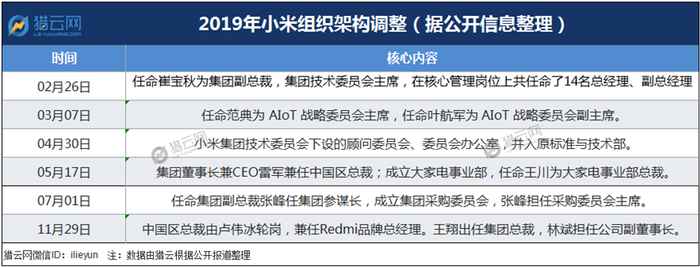 一年里,小米组织架构经历了六次调整。