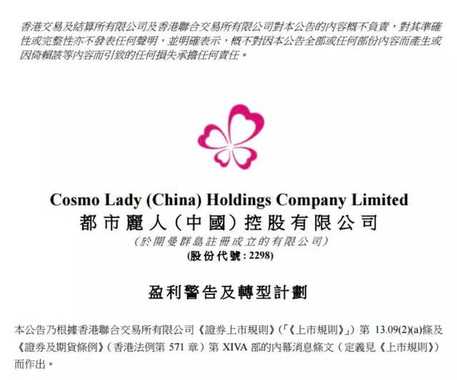 2019年12月23日,在港股上市的“中国内衣第一股”都市丽人发布盈利警告及转型计划,预计2019年公司亏损不少于人民币9.8亿元。