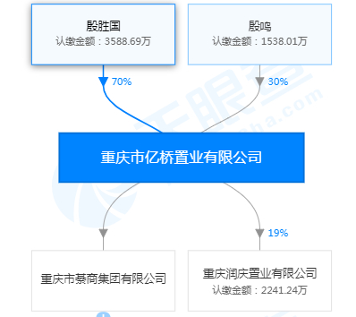 重庆亿桥置业注册资本和实缴资本均为5126.7万元,有两名股东,殷胜国占70%,殷鸣占30%。