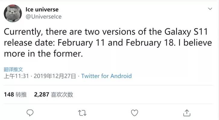 不仅如此,期间还遭遇了iQOO的狙击,同样也是小米9之前发布了骁龙855手机。而本以为今年小米10肯定能够抢下骁龙865的首发,但没想到这次遇到的对手是三星S11,相比今年的三星S10,发布时间提前了很多。据Ice Universe爆料称,三星可能会在明年2月18日发布,