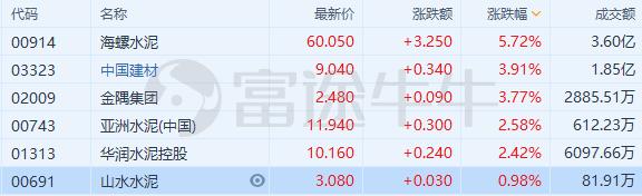 原标题:强势!建材水泥股持续大涨,海螺水泥、华润水泥创新高 来源:富途资讯