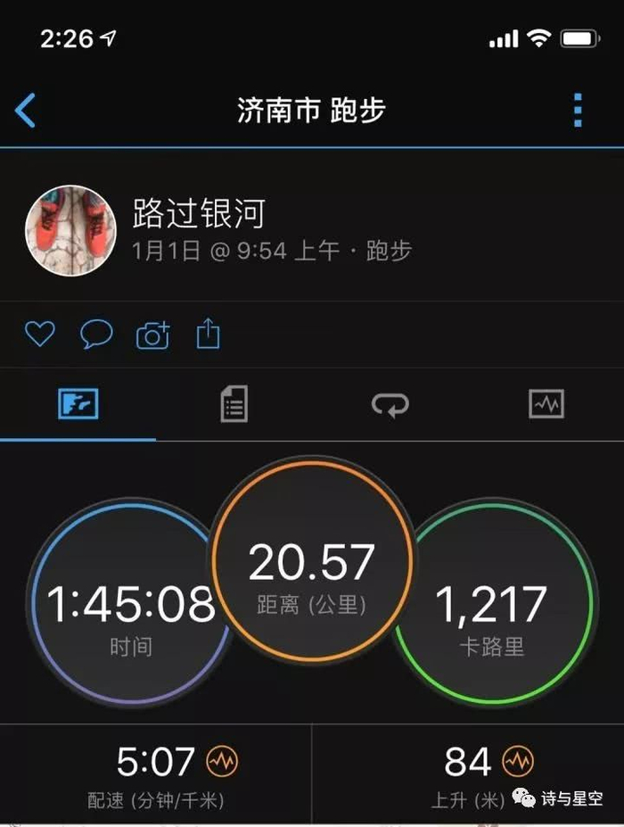当时刚跑完20公里,用的是一款佳明的跑表。