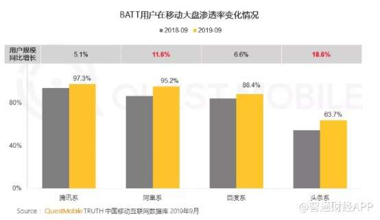 从表面上看,百度流量受到来自字节跳动、拼多多等互联网新生力量蚕食,然而数据却证明支撑百度核心价值的流量依然足以在互联网竞技场一战。数据显示,2019年9月,百度APPDAU已达1.89亿,同比增长25%;截至同年9月,百度系用户规模已经突破10亿,移动端渗透率达88.4%,仅低于腾讯和阿里,远高于头条系。也就是说,即使以流量绝对值估算公司价值,百度当前11倍的估值也是偏低的。