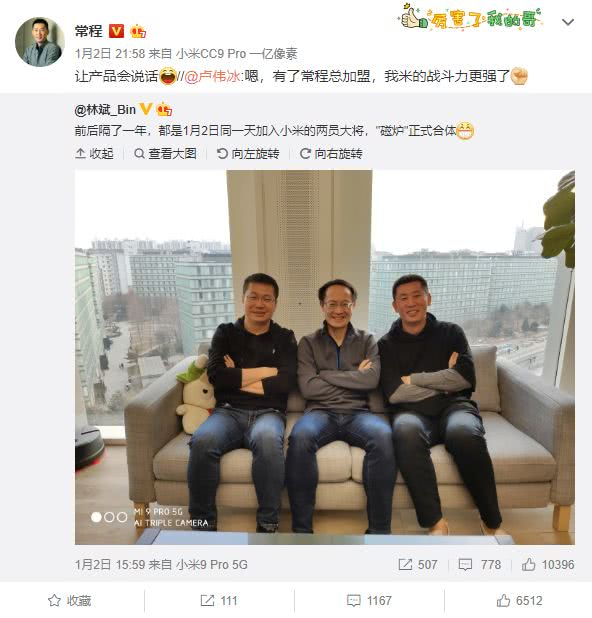 金立前总裁卢伟冰加入小米一周年,“万瓷王”常程赶到海淀清河小米科技园报到。这让老东家联想十分尴尬,毕竟“常程因个人身体健康和家庭原因而离职”的消息才刚放出去两天。
