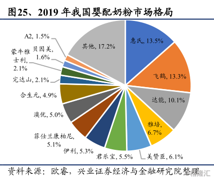 同时,根据兴业证券研究预计,受未来出生率下降和母乳喂养率提升,加上我国奶粉均价较高等因素,我国婴配奶粉市场规模增速将放缓至个位数。