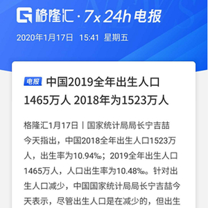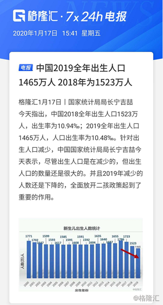 根据国家统计局公布的最新人口数据,2019全年,我国出生人口1465万人,人口出生率仅为10.48‰,相比2018年又下降了58万人。这是我国从2016年全面实施二孩政策以来已经连续三年出现下滑,2017年降至1723万人,2018年更是降低200万人至1523万人。
