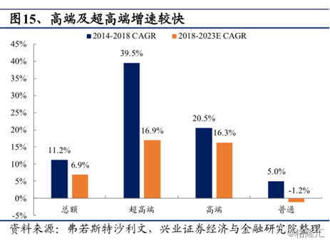 根据相关数据,近五年来,我国超高端、高端奶粉增速明显快于普通奶粉,而且市场占比也不断提升。据弗若斯特沙利文预测,未来5年高端、超高端婴幼儿奶粉增速仍将维持 15%以上。此外,有机奶粉、羊奶粉等细分品类亦快速增长,分别保持 40%、 20%以上增速。
