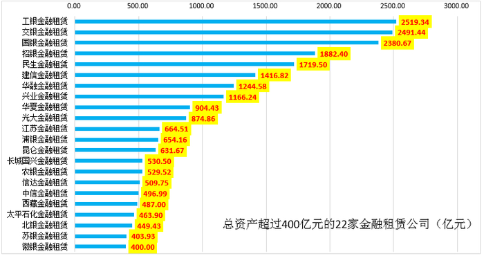 (三)总资产:达到3万亿元左右,8家金融租赁公司超过1000亿元