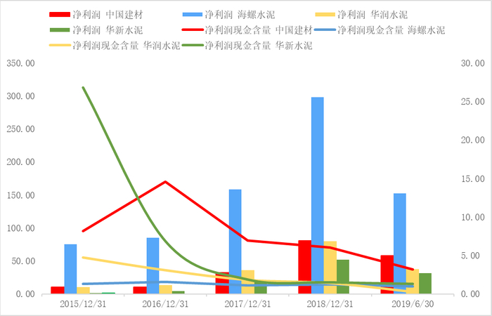 可以明显看出,中国建材在各年度经营性净现金流均明显超过海螺,而经营较好的华润水泥和华新水泥公司股价均在经营性现金流好转的当年被市场发现;2019年的冀东水泥也重复这一规律。