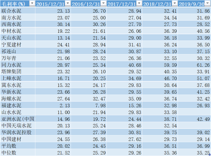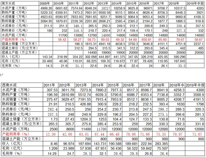 而中国建材系的中国建材、联合水泥、南方水泥、西南水泥以及海螺水泥、华润水泥毛利率上升幅度较小,其中海螺水泥因为其在2018年开展贸易业务拉低平均毛利率,扣除这一因素,海螺2018年的水泥业务毛利率为46.5%-49.86%。