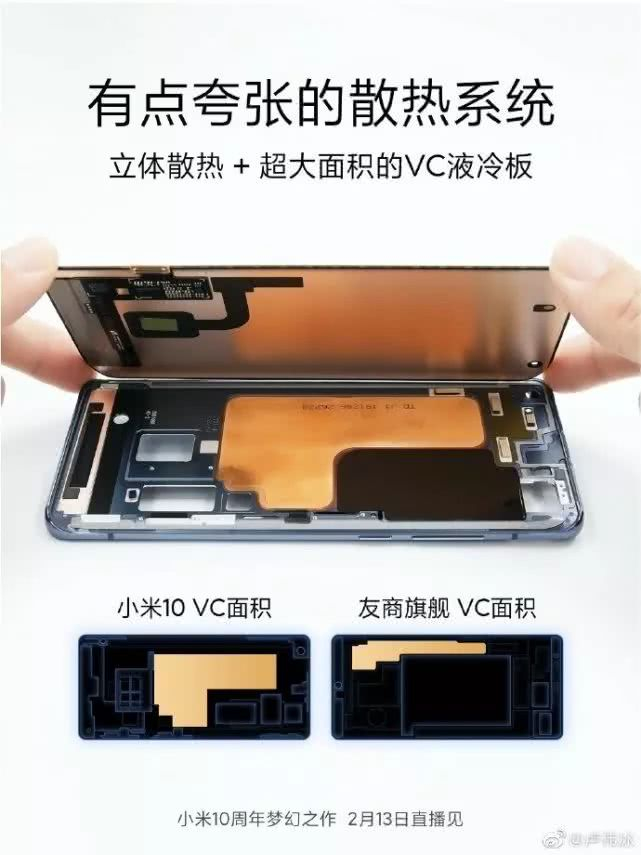 从现在的情况我们已经看出小米10是处处针对华为Mate 30 Pro 5G,当然目前小米只能这么做。因为华为P40系列还没有正式发布,官方不可能进行云对比的。目前小米10在性能上超越华为Mate 30 Pro 5G是板上钉钉的事,常程还发出了小米10传输速度强过华为Mate 30 Pro 5G的对比视频,当然今天官方宣传的是小米10的散热远远强于华为Mate 30 Pro 5G。而在散热上能做到这一点,一切源于小米10超大的散热面积,顶级的散热材质还有人工智能温控等等。