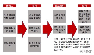 在要约收购过程中,主要有几大关键步骤:一,要约人向目标公司董事局发出要约收购,从目标公司股东手上收购股票;二,向目标公司股东寄发要约综合文件,三,目标公司召开全体股东大会及类别股东会议,进行取消上市地位的表决,四,在特定时间点之前,股东接受要约,提供股票,在要约成功后拿钱。