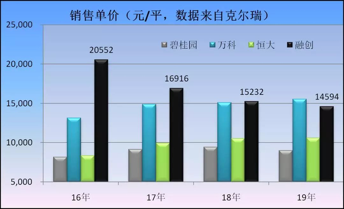 2016年-2019年,万科和融创的房子,明显比碧桂园和恒大要贵。