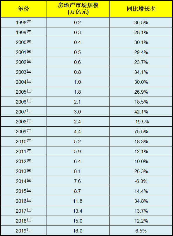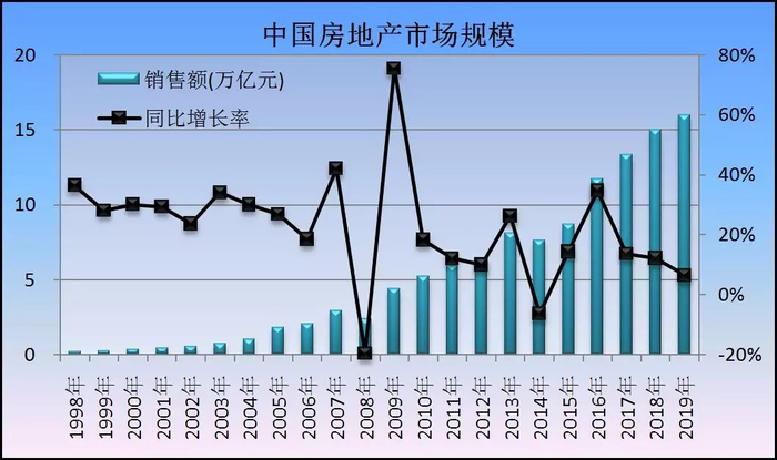 中国房地产市场整体高速发展是没戏了,2019年销售额16万亿元,yoy+6.5%。