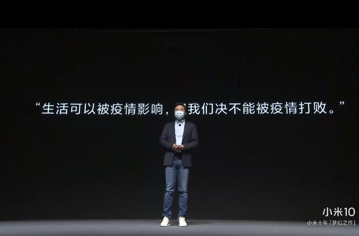 发布会伊始,身为湖北人的雷军佩戴口罩、声音略微颤抖的为湖北加油,为武大加油,并和大家相约“疫情结束,一起去武大看樱花”。