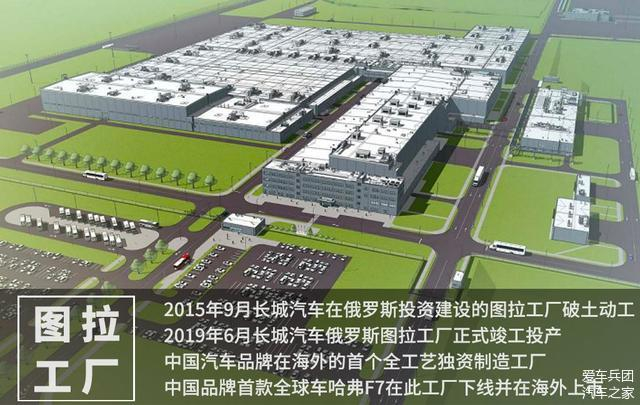 俄罗斯图拉工厂:2019年6月,长城汽车俄罗斯图拉工厂正式竣工投产,这是中国汽车品牌在海外的首个全工艺独资制造工厂;伴随着图拉工厂的投产,中国品牌首款全球车哈弗F7也在此工厂正式下线并上市。2019年,长城汽车在中东欧区域市场的认可度逐渐攀升,尤其在俄罗斯市场,销量的同比增长率高达458%,成为2019年中国汽车品牌在俄罗斯市场的销量冠军。
