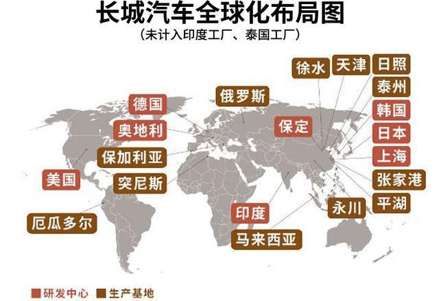 我们的首都北京距离俄罗斯首都莫斯科的直线距离约5843公里、距离印度首都新德里约3880公里、距离泰国首都曼谷的直线距离约3207公里;俄罗斯、印度、泰国,这三个位于中国不同方位的国家,因为长城汽车的全球化战略又多了一个交集点,长城汽车目前在海外的三个全工艺整车工厂就在这三个国家里。