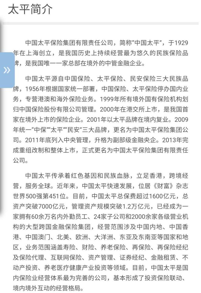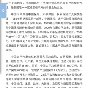 另外一个,它的金融牌照也比较齐全,它除了寿险财险,还有再保、资管的一个牌照,同时在国际化的道路上,太平走的比较早,因为它本身它总部就在香港,它在香港澳门东南亚,包括英国日本都有子公司在展业。这也算一些经营上的一些亮点吧。