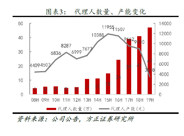 三、新业务价值又连续几个季度下滑,代理人的人均产能下滑,管理层的激励不足等