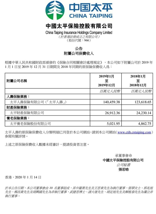 我们等等看19年年报来验证一下,看它的全年的新业务价值的增速能否转正,这个也是影响股价的一个非常重要的因素。因为我看到有调研说,太平四季度的主推是保单价值率比较高的一个健康险,那么NBV转正的一个可能性还是存在的。