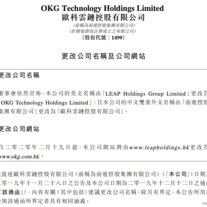 近日,香港主板上市公司(1499.HK)发布公告,宣布公司名称将由前进控股集团有限公司(以下称“公司”)(Leap Holdings Group Ltd)变更为“欧科云链”控股有限公司(OKG Technology Holdings Ltd)。众所周知,区块链行业在去年迎来了重大的政策转机,正迈入新阶段。而公司作为区块链行业里的领先玩家,一举一动都深受关注。其更名举措更是向市场传递了全面发力的预期,而新的中文品牌名“欧科云链”也揭示出了未来的重点发展方向。