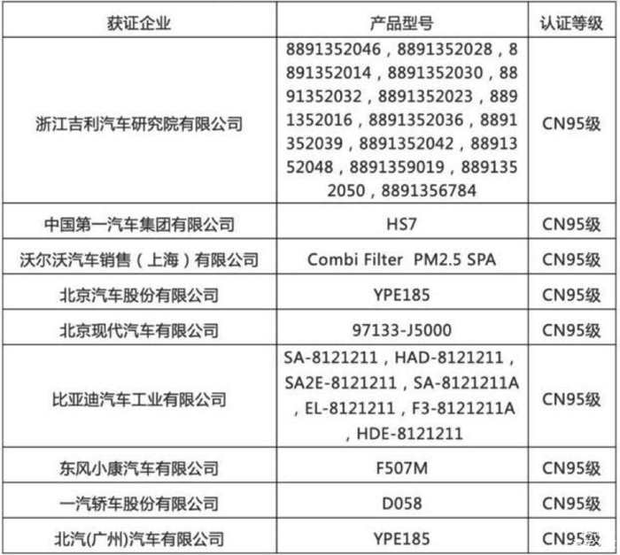 这9家车企获CN95级首批认证,仅北京现代一家合资,吉利是001号!