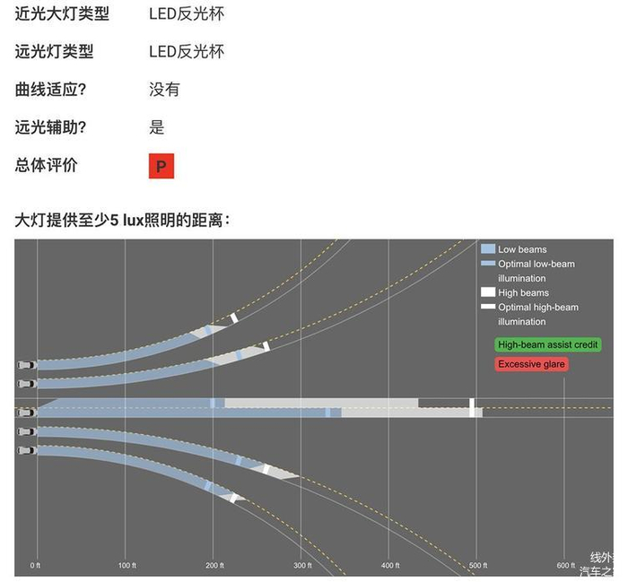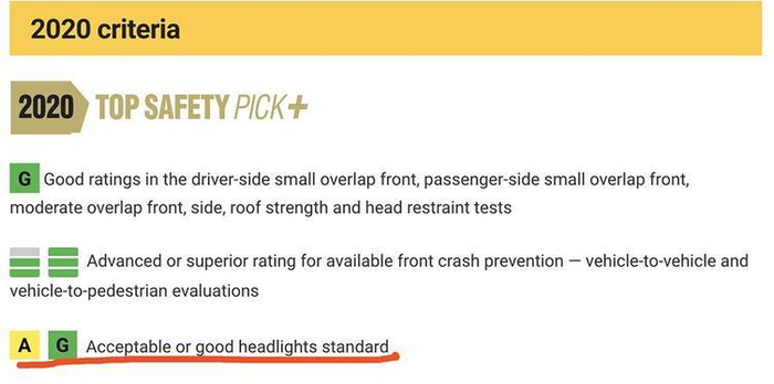 除此之外,2016年之后,IIHS还增加了车灯照明范围的评级。也就是说,不论主动安全还是被动安全,都要取得很高的成绩,才能获得TSP+。