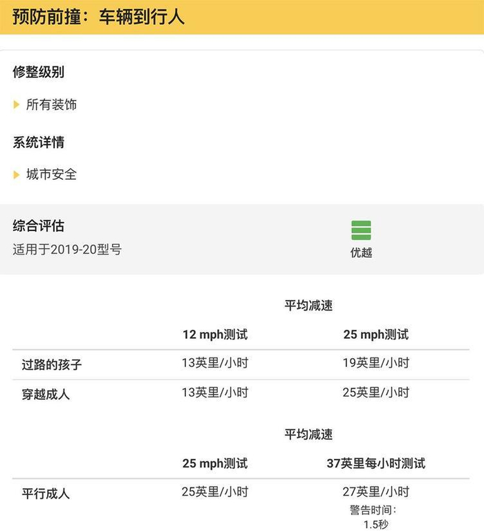 ▲S60预碰撞系统,车辆对行人成绩