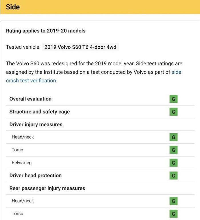 ▲S60侧面碰撞成绩