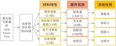 氮化镓(GaN)功率器件具有易散热,体积小,损耗小,功率大等优势,因此氮化镓比硅更适合做大功率高频的功率器件。