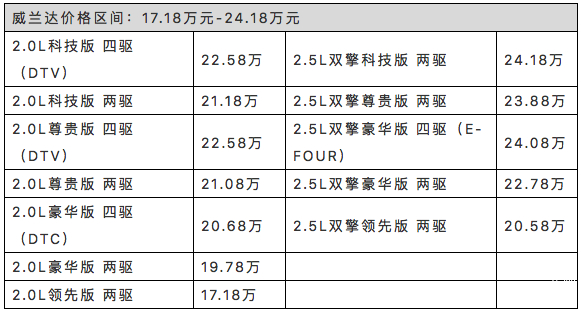 打价格战?入门比RAV4便宜3000元!售17.18万起,丰田威兰达上市
