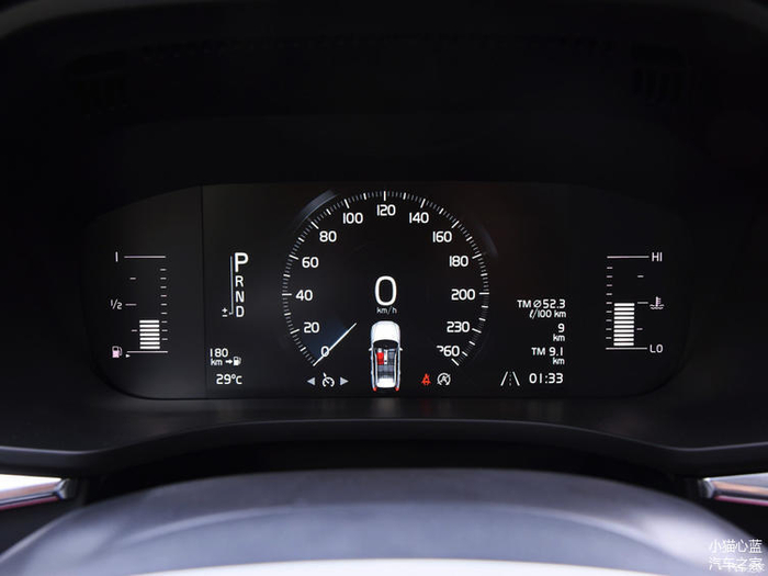 沃尔沃XC60的内饰是标准沃尔沃风格,中控台大尺寸显示屏很吸引人,实体按键较少是它的特色,但使用时需要适应,不如Q5L更容易上手。低配XC60仪表盘中间为8英寸液晶显示屏,可以显示车速等信息,左右两侧分别为油表和水温,就视觉效果而言,小猫认为它不如Q5L更具运动感。