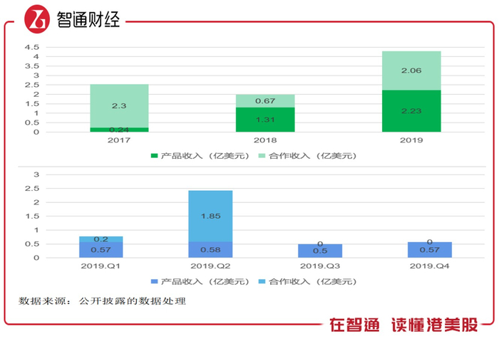 产品板块高速成长,不过合作收入波动却比较大。2018年合作收入大幅度下降,主要为2017年有2亿多美元的授权收入,而2018年没有,2019年合作收入同比大幅度提升,主要为Q2增加所致,与新基公司(属于百时美施贵宝)就终止百泽安合作协议获得的1.5亿美元,因此后两季度均无合作收入。