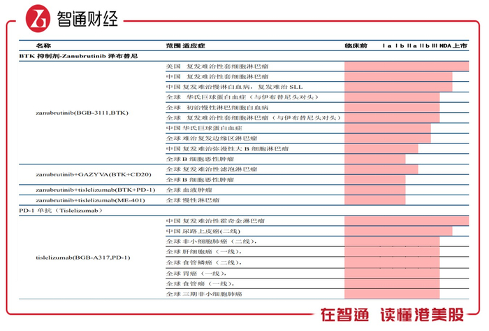 公司在研产品覆盖实体瘤和血液肿瘤,以下为公司部分在研管线及商业化管线: