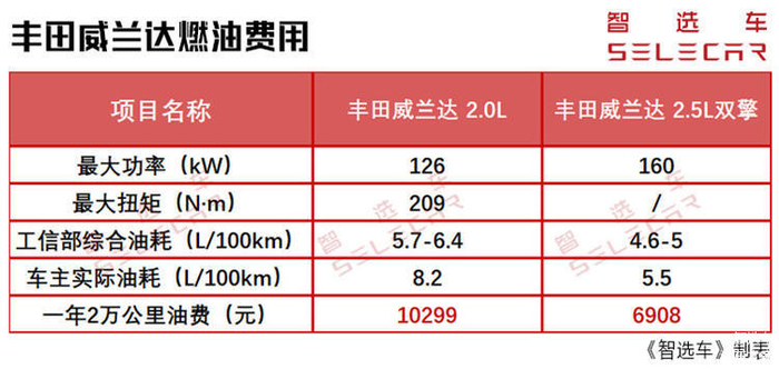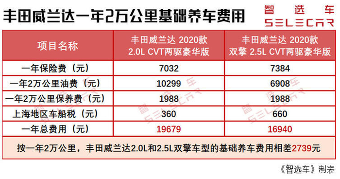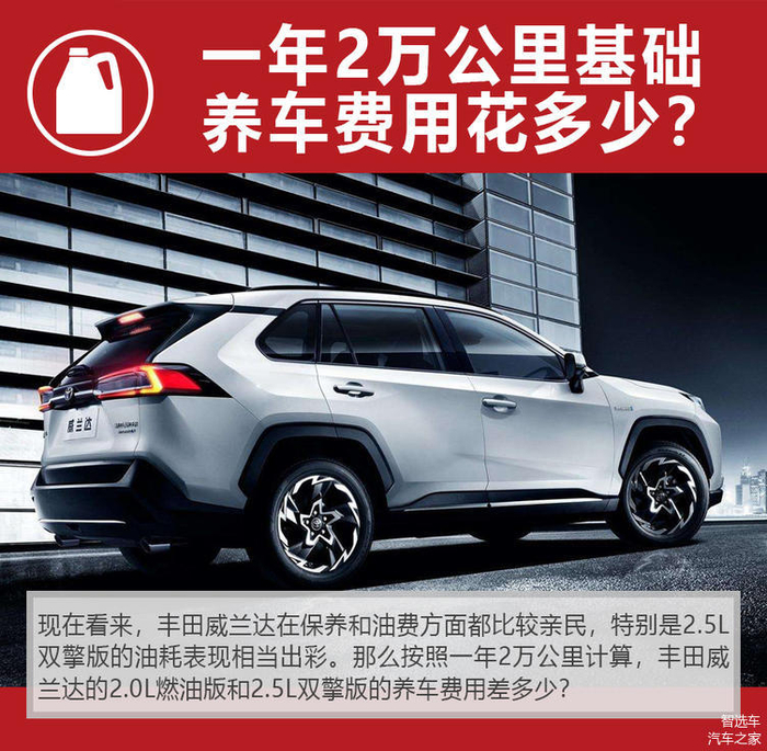 20万级热门SUV,丰田威兰达燃油、双擎版的购车、养车成本差多少?